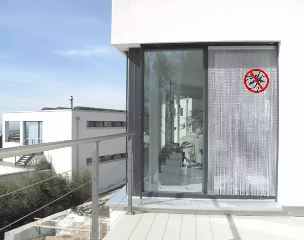 Rideau anti-mouches (porte, baie vitrée, terrasse) — sur mesure, prêt à poser, fabriqué en France.