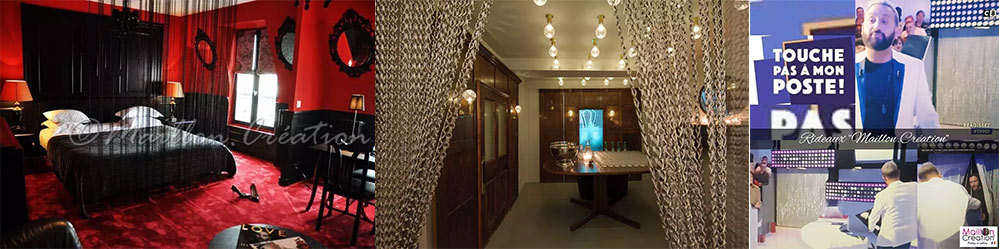 Conçus pour durer, nos rideaux en chaînette d’aluminium allient robustesse, modernité et fabrication française. Contactez-nous pour personnaliser votre rideau séparateur d’espace ou décor de télévision.