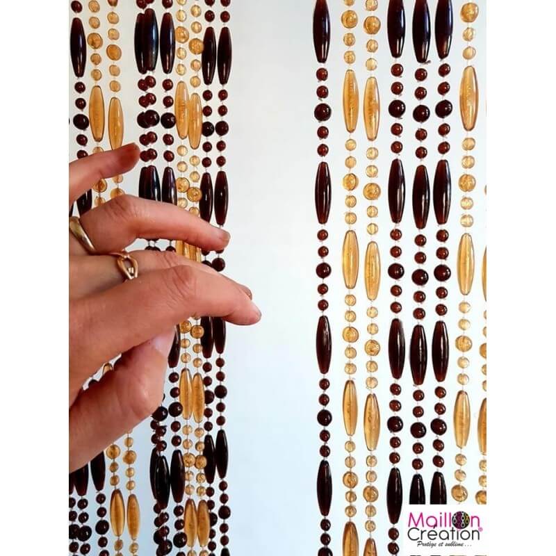 Tailor-made door curtain in amber and translucent honey pearls. Very tight with 88 strips per meter.