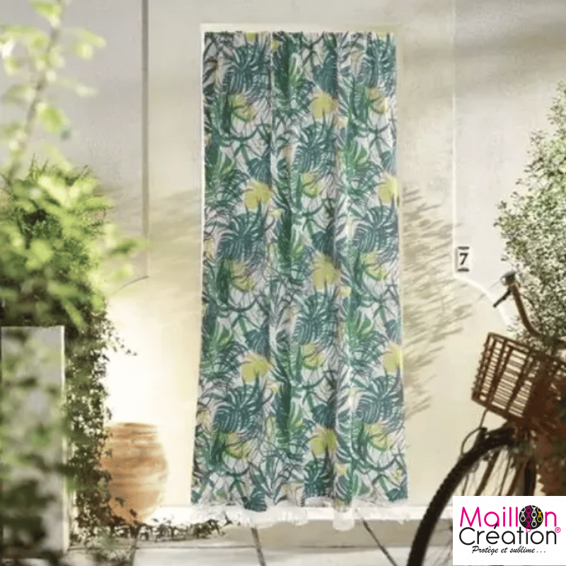 Provencal and exotic atmosphere to dress your front door with this elegant "Marseillais" door curtain with "Jungle" spirit foliage made in France.