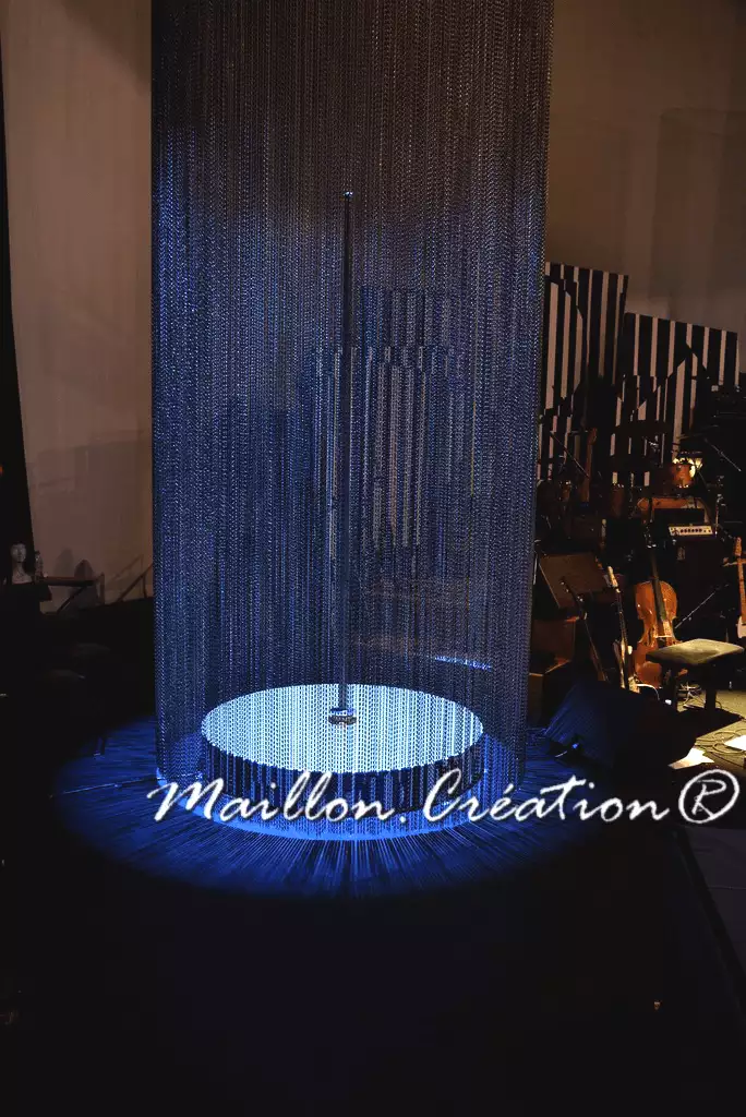 À l'occasion de l'exposition Bowie, le concepteur des cérémonies d'ouverture et de clôture des Jeux Olympiques d'Albertville a créé un spectacle autour de la pop star. Wiebo est un concert performance. Sur la scène, deux grands tubes réalisés à partir de nos rideaux Maillon.Création® servent de décor où sont projetées images et lumières.