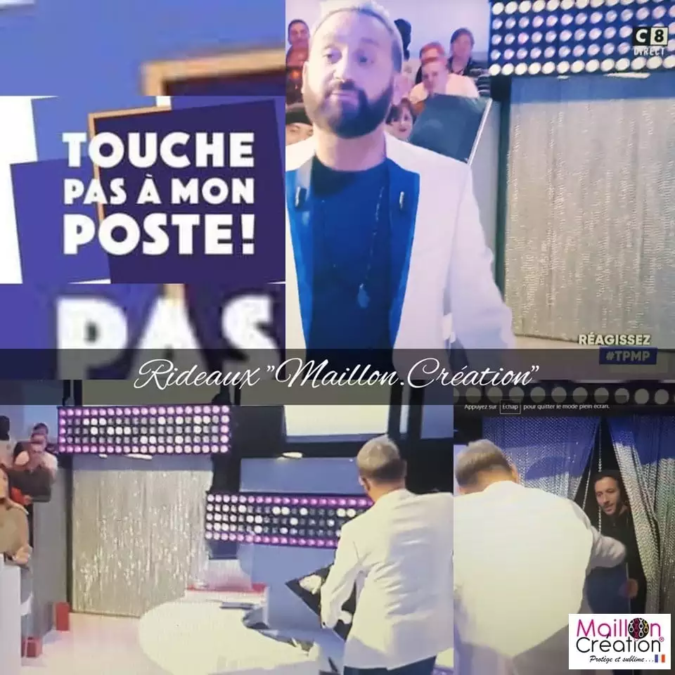 Notre modèle PRESTIGE rideau fil d'aluminium dans l'émission "Touche pas à mon poste" (TPMP) de Cyril Hanouna sur C8. Rideau décor plateau TV